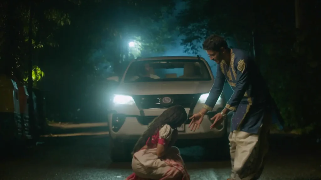 As Noyontara walks away, she feels lost, not just in her thoughts but also on the road. She wonders if she should go back home to her family, especially since she feels guilty about her sister Komal’s broken engagement. She thinks it’s her fault because people were scared that she could talk to spirits. While she’s walking, she notices a strange car following her. Scared, she starts running, her heart pounding like drums in a festival! Meanwhile, Surjo Babu, a kind-hearted man, is in his car with his driver, Vinod Kaka. They see Noyontara running in the middle of the road. Surjo asks Vinod to honk, but the car’s horn isn’t working! Suddenly, Noyontara trips and almost gets hit by Surjo’s car. Vinod slams the brakes just in time, and Surjo rushes out to check if she’s okay. Noyontara wonders why fate keeps bringing her and Surjo together, like two stars meeting in the sky.